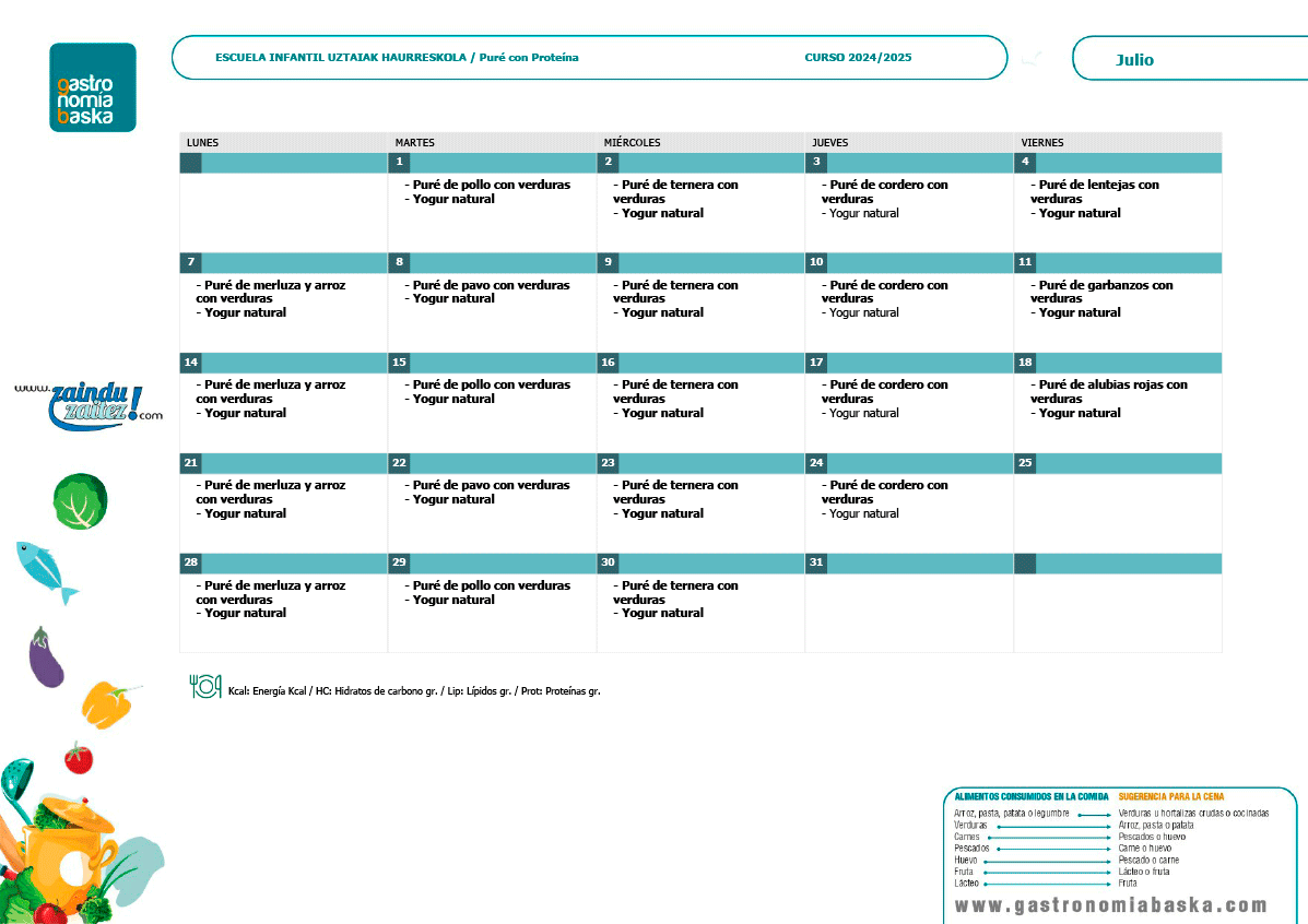 Menús julio