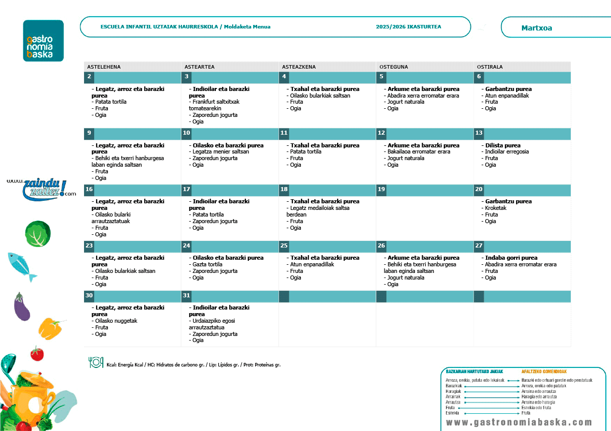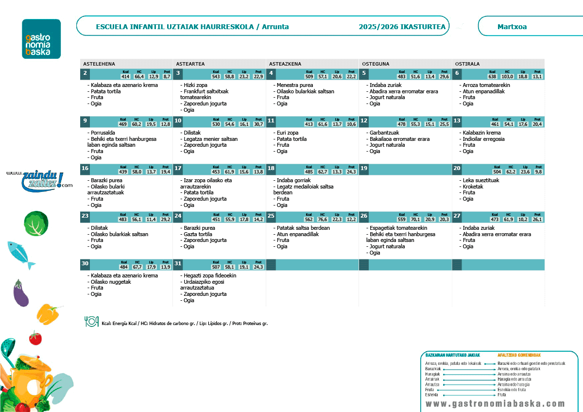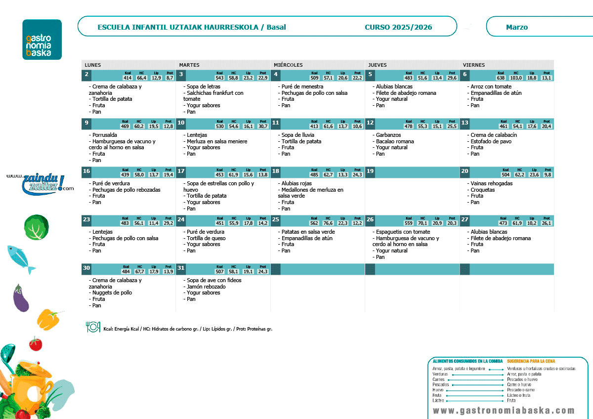 Menús abril