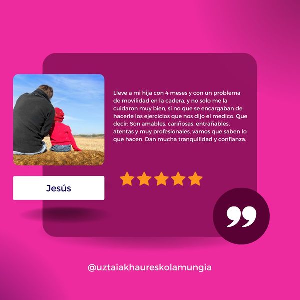 Las familias valoran altamente la Escuela Infantil Uztaiak, destacando su trato cercano, profesionalidad y el ambiente familiar que ofrece. Muchos padres mencionan que sus hijos se sienten felices y seguros en el centro, y que el equipo educativo se preocupa por su bienestar y desarrollo.