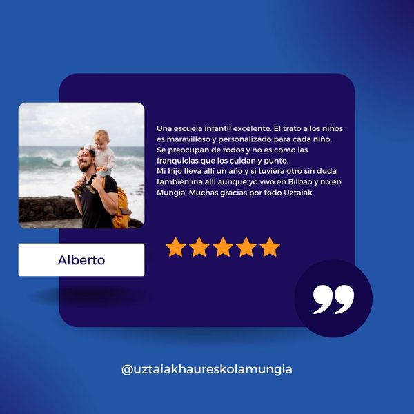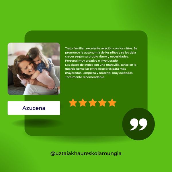 En resumen, la Escuela Infantil Uztaiak en Mungia es una excelente opción para las familias que buscan una educación infantil de calidad, basada en el respeto, la autonomía y el desarrollo integral de sus hijos.